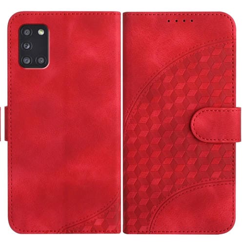Funda para Teléfono Samsung Galaxy A31 Yx0060 Cuero Relieve Cabeza Elefante con Cordón (Rojo)
