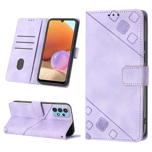 Estuche para teléfono Samsung Galaxy A32 4G de cuero en relieve con tacto de piel (Púrpura Claro)