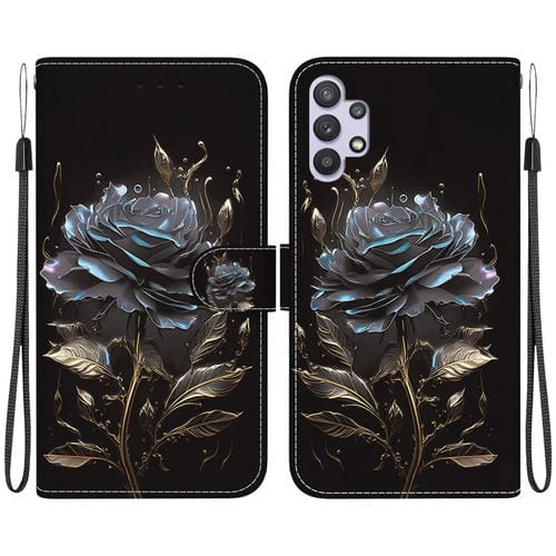 Funda para Teléfono Samsung Galaxy A32 4G Cuero Dibujo Coloreado Textura de Cristal (Rosa Negra)