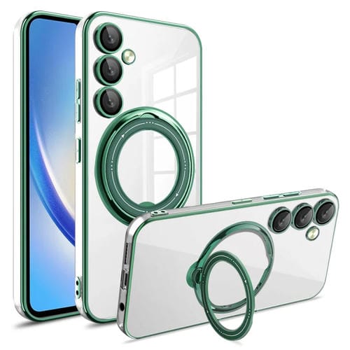Estuche para Teléfono Samsung Galaxy A34 Galvanoplastia Magsafe Soporte Rotación 360 Grados (Verde Oscuro)