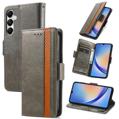 Funda de Cuero Caseneo para Samsung Galaxy A35 5G con Hebilla Magnética Dual (Gris)
