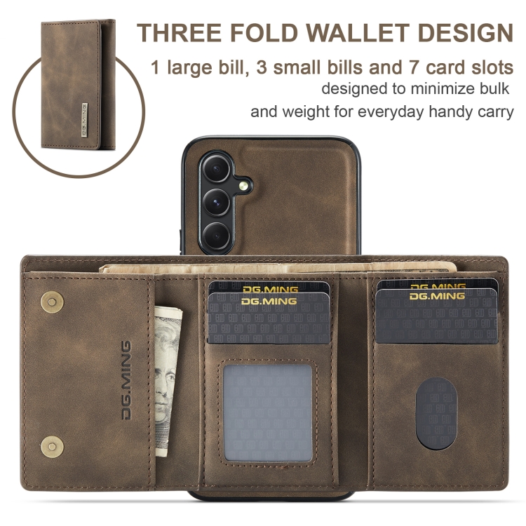 Funda Cartera Samsung Galaxy A35 5G Dg.Ming M1 Series Múltiples Tarjetas 3 Pliegues (Café)