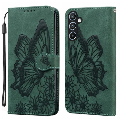 Funda para Teléfono Samsung Galaxy A35 5G de Cuero con Tapa Horizontal y Diseño de Mariposas (Verde)