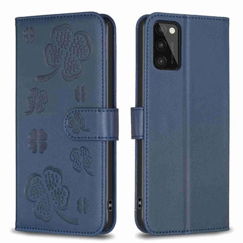 Funda para Samsung Galaxy A41 Cuero Relieve Cuatro Hojas (Azul)