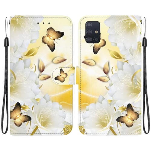 Funda de Cuero Samsung Galaxy A51 5G Dibujo Coloreado Textura Cristal (Epiphyllum Mariposa Dorada)