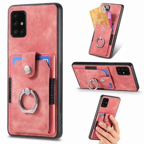Funda para Teléfono Samsung Galaxy A51 con Billetera, Tarjeta, Anillo y Sensación de Piel Retro (Rosa)