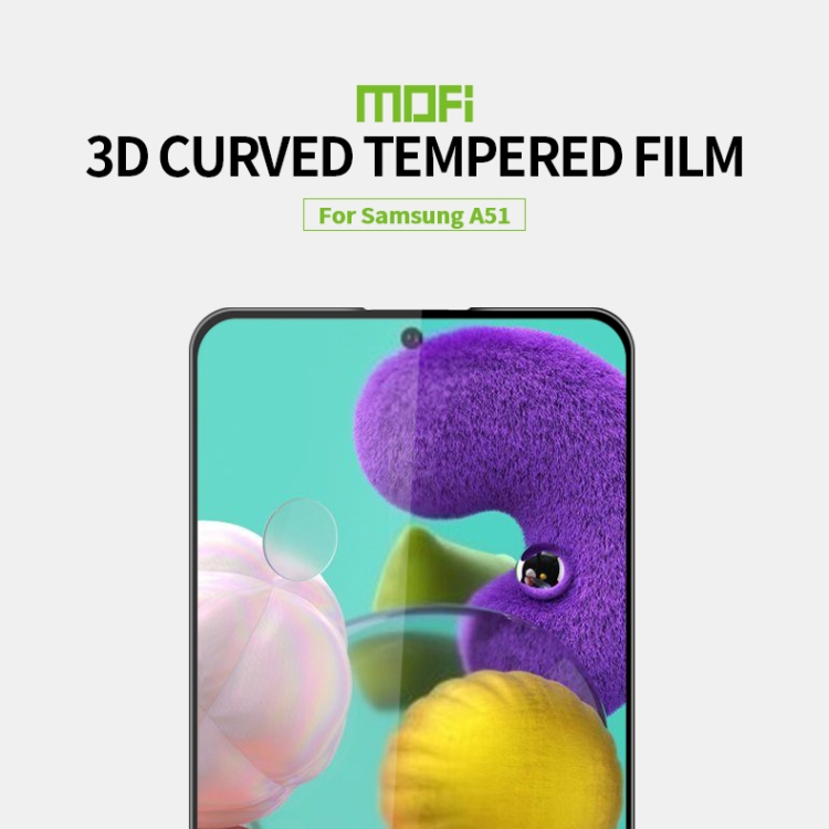 Película de Vidrio Templado Mofi 9H 3D para Samsung Galaxy A51 con Pantalla Curva a Prueba de Explosiones (Negro)