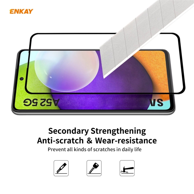 Película de Vidrio Templado Enkay Hat-Prince para Samsung Galaxy A52 5G 4G Pegamento Completo 0.26mm 9H 2.5D (5PCs)