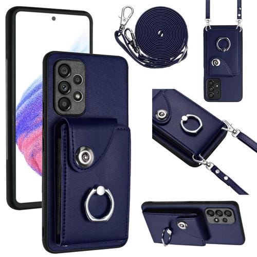 Funda para Teléfono Samsung Galaxy A53 5G con Soporte para Anillo y Bolsa para Tarjeta con Cordón Largo (Azul)