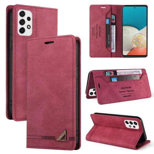 Funda de Cuero para Samsung Galaxy A53 5G Skin Feel con Tapa Horizontal Cepillo Antirrobo y Soporte (Rojo Vino)