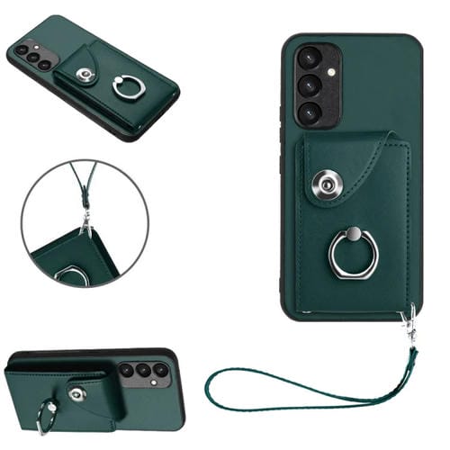 Funda para Teléfono Samsung Galaxy A54 5G de Pu con Soporte para Anillo y Bolsa para Tarjeta con Cordón (Verde)