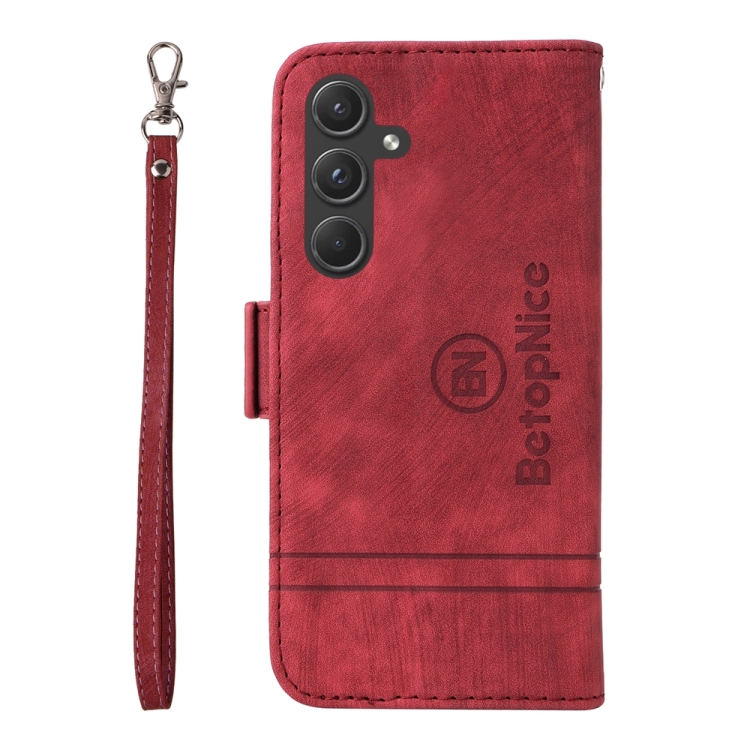 Funda para Samsung Galaxy A55 Betopnice de Cuero con Hebilla de Doble Cara (Rojo)