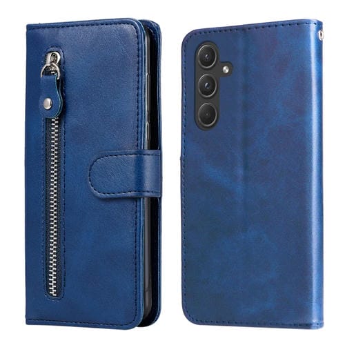 Funda para Teléfono Samsung Galaxy A55 Cuero con Cremallera y Textura de Becerro (Azul)