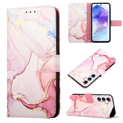 Funda de Cuero para Samsung Galaxy A55 Pt003 con Tapa y Patrón de Mármol (Oro Rosa)