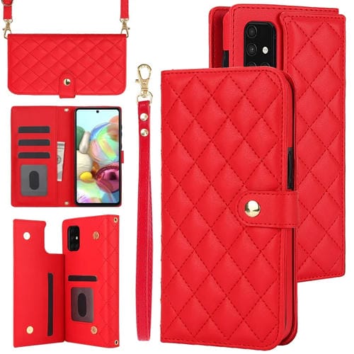 Estuche para Teléfono Samsung Galaxy A71 4G Crossbody Cuero Rómbico Multifunción (Rojo)