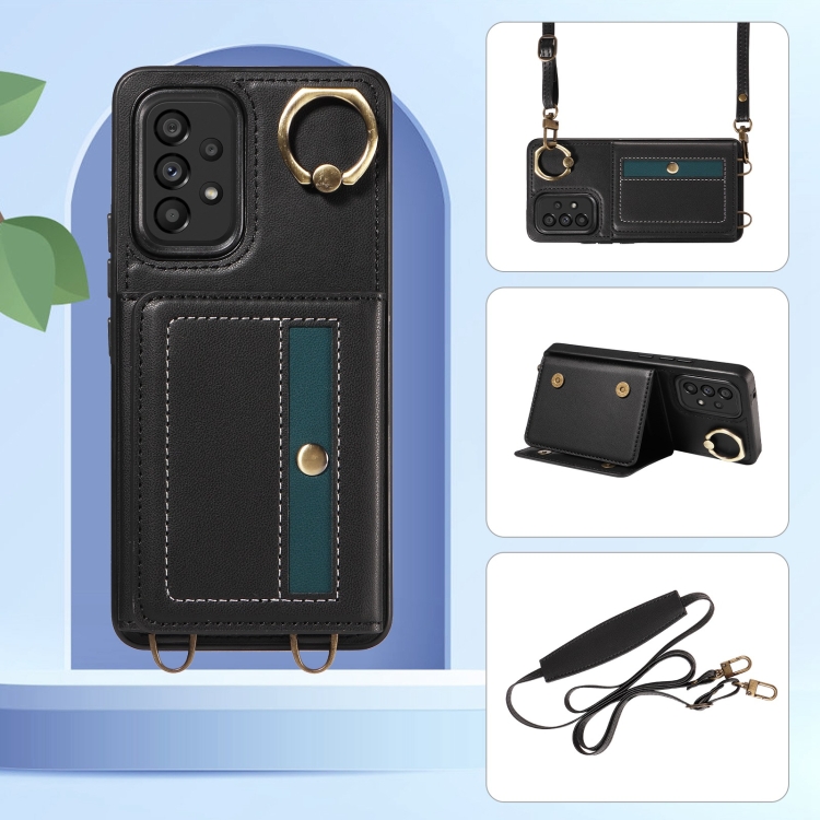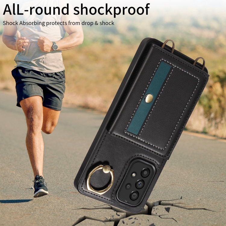 Funda Tipo Billetera Samsung Galaxy A73 5G Cuero con Soporte para Anillo (Negro)