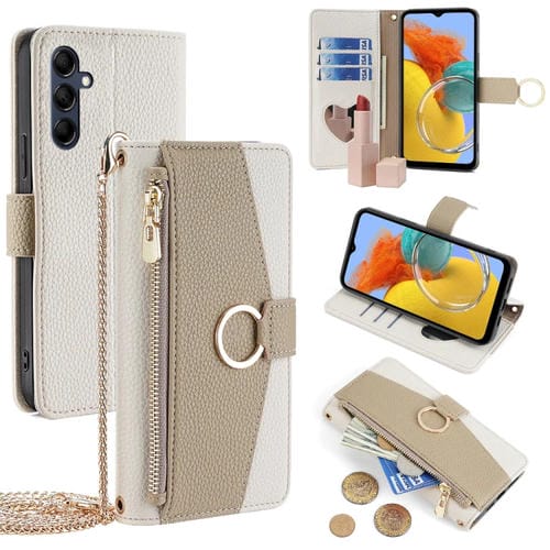 Funda para Teléfono Samsung Galaxy M14 5G Cuero Textura Litchi Cruzada (Blanco)