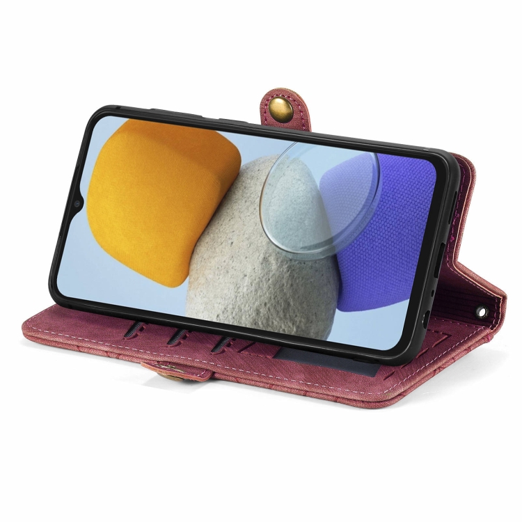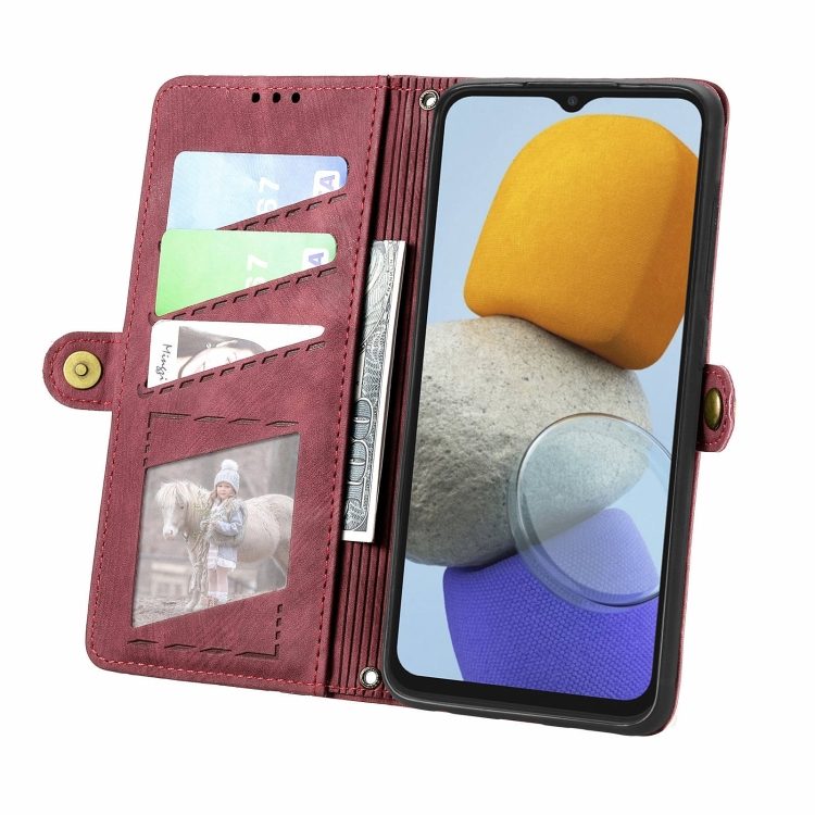 Estuche para Teléfono Samsung Galaxy M23 Cuero Hebilla Lateral Billetera Cremallera (Rojo)