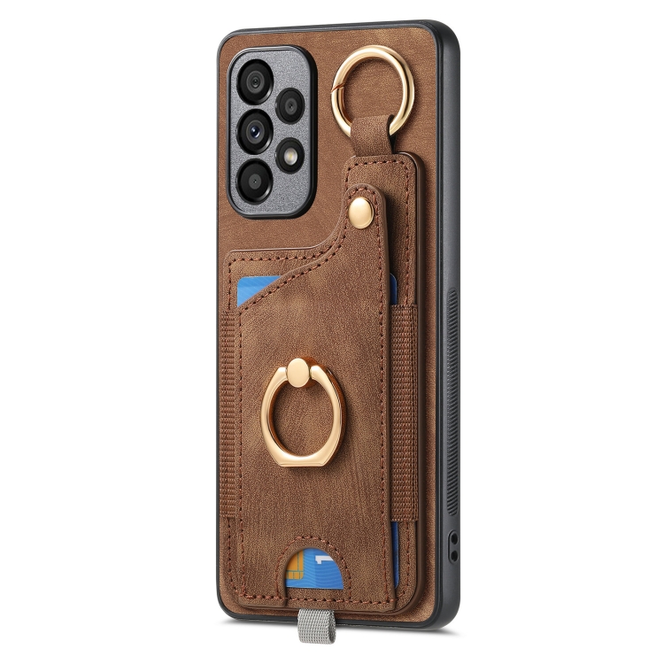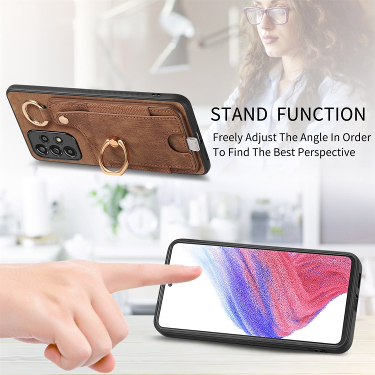 Funda para Teléfono Samsung Galaxy M32 4G con Bolsa para Tarjeta y Anillo (Marrón)