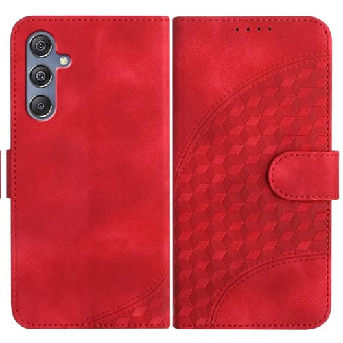 Funda de Cuero Samsung Galaxy M34 Yx0060 con Relieve y Cabeza de Elefante con Cordón (Rojo)