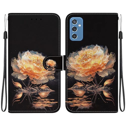 Funda para Teléfono Samsung Galaxy M52 5G Cuero Dibujo Coloreado Textura Cristal (Peonía Dorada)