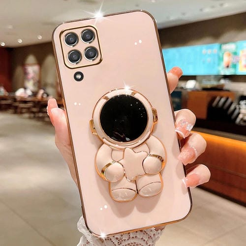Estuche para teléfono Samsung Galaxy M53 Embrace Stars con soporte para Astronauta Galvanizado (Rosa)