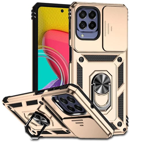 Estuche para Teléfono Samsung Galaxy M53 con Soporte Deslizante para Levas (Dorado)