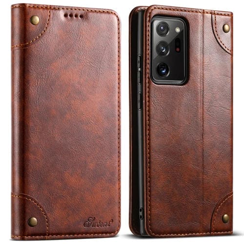 Funda para Samsung Galaxy Note20 Ultra Suteni de Cuero con Hebilla y Textura de Becerro Barroca (Caqui)