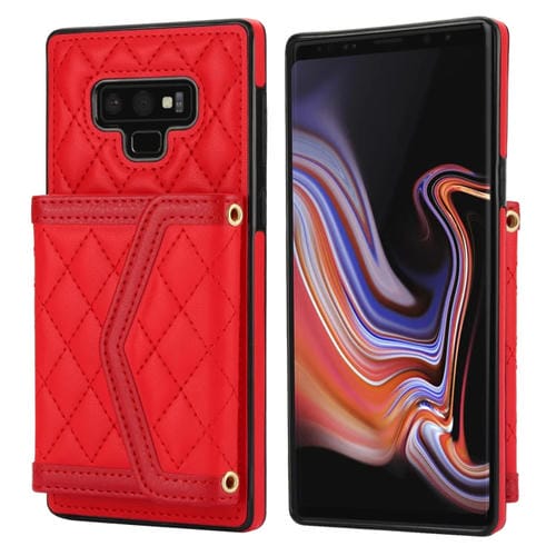 Estuche para Teléfono Samsung Galaxy Note9 Bolsa para Tarjetas Textura Rómbica Empalme Cordón Largo (Rojo)