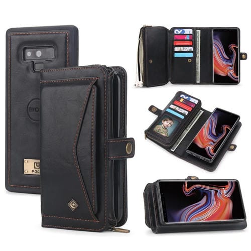 Funda de Cuero Samsung Galaxy Note9 con Billetera y Cremallera Multifuncional (Negro)