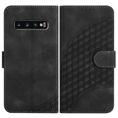Funda de Cuero Samsung Galaxy S10 Yx0060 con Relieve y Cabeza de Elefante con Cordón (Negro)