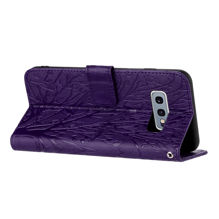 Funda para Teléfono Samsung Galaxy S10E Cuero Patrón En Relieve Tree Birds (Púrpura)