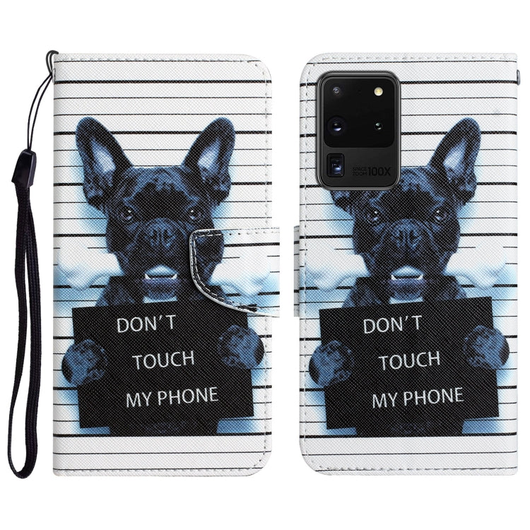 Para Samsung Galaxy S20 Estuche para teléfono de cuero con dibujo ultra coloreado (perro negro)