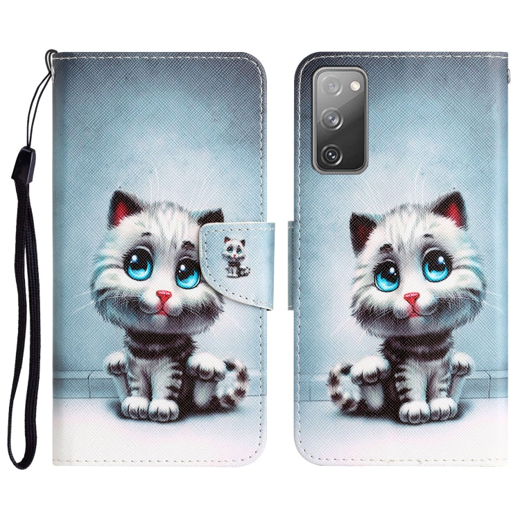 Para Samsung Galaxy S20 FE Estuche para teléfono de cuero con dibujo coloreado (ojos azules)