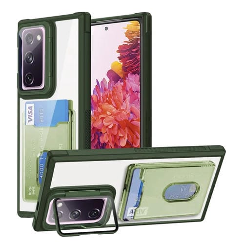Estuche para Teléfono Samsung Galaxy S20 FE TPU Híbrido Acrílico con Soporte y Bolsa de Tarjeta (Verde)