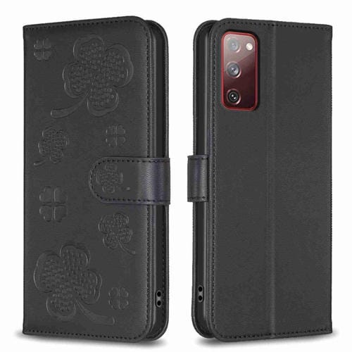 Funda de Cuero Samsung Galaxy S20 FE con Relieve de Cuatro Hojas (Negro)