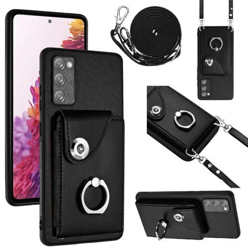 Funda para Teléfono Samsung Galaxy S20 FE Soporte Anillo Bolsa Tarjeta Cordón Largo (Negro)