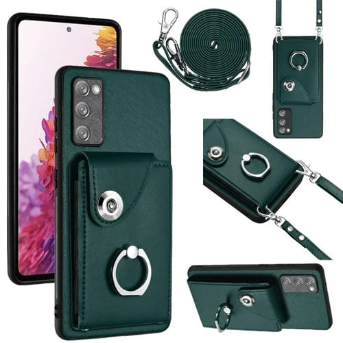 Funda para Teléfono Samsung Galaxy S20 FE con Soporte para Anillo y Bolsa para Tarjeta con Cordón Largo (Verde)