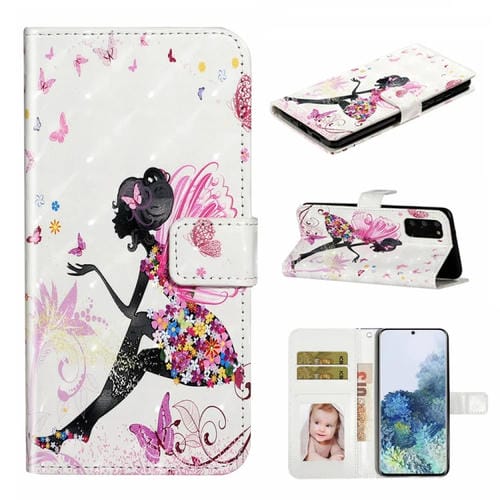 Funda de Teléfono Samsung Galaxy S20 Cuero Dibujo 3D En Relieve al Óleo (Hada de Flores)