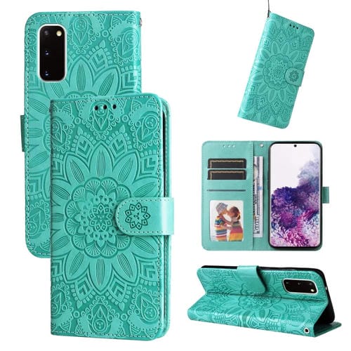 Funda de teléfono Samsung Galaxy S20 cuero con estampado de girasol en relieve (Verde)
