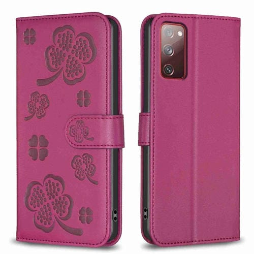 Funda para Teléfono Samsung Galaxy S20 Cuero Relieve Cuatro Hojas (Rojo Rosa)