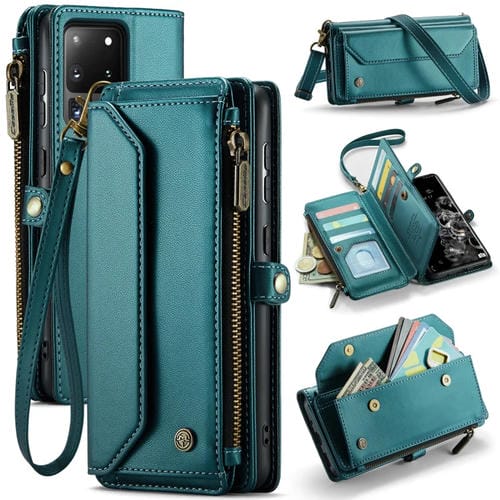 Estuche para teléfono Caseme C36 para Samsung Galaxy S20 Ultra cartera con ranuras para tarjetas cremallera cuero antirrobo Rfid (Azul-Verde)