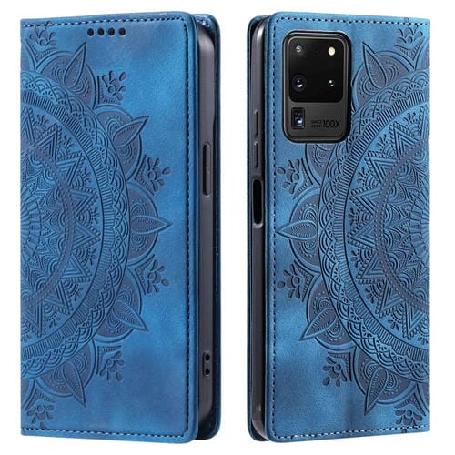 Funda de Cuero Magnética Totem para Samsung Galaxy S20 Ultra en Relieve (Azul)