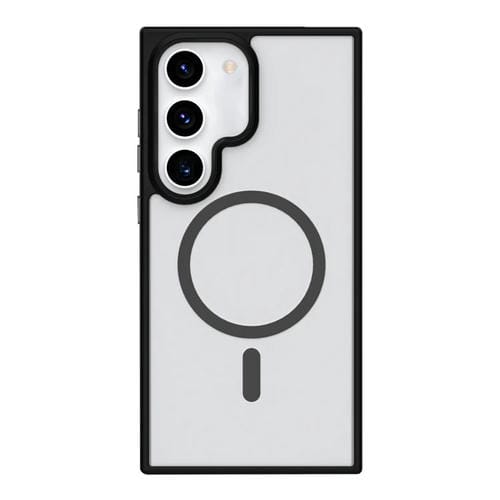 Estuche para teléfono Samsung Galaxy S21 5G botón de metal sensación de piel Magsafe mate a prueba de golpes (Negro)