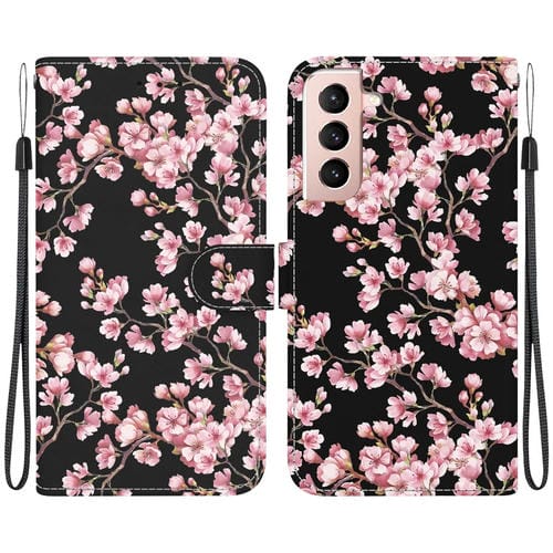 Estuche para Teléfono Samsung Galaxy S21 5G Cuero Dibujo Coloreado Textura de Cristal (Flor de Ciruelo)