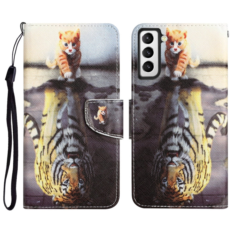 Para Samsung Galaxy S21+ 5G Estuche para teléfono de cuero con dibujo coloreado (Tigre)