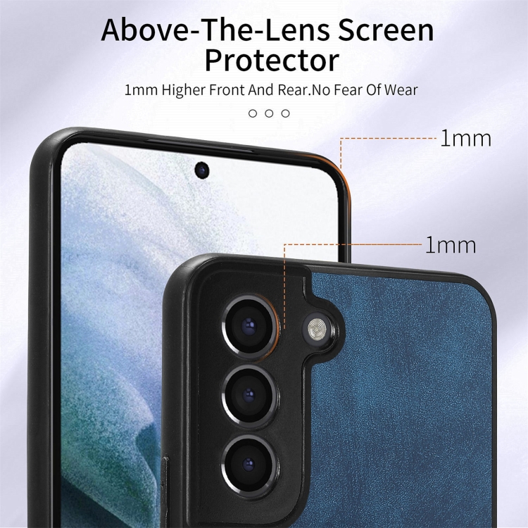 Funda para Teléfono Samsung Galaxy S21 FE 5G con Billetera Tarjeta Anillo Sensación de Piel Retro (Azul)