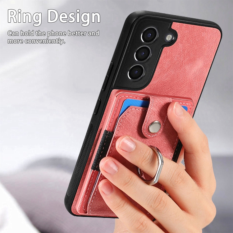 Funda para Teléfono Samsung Galaxy S21 FE 5G con Billetera, Tarjeta y Anillo con Sensación de Piel Retro (Rosa)