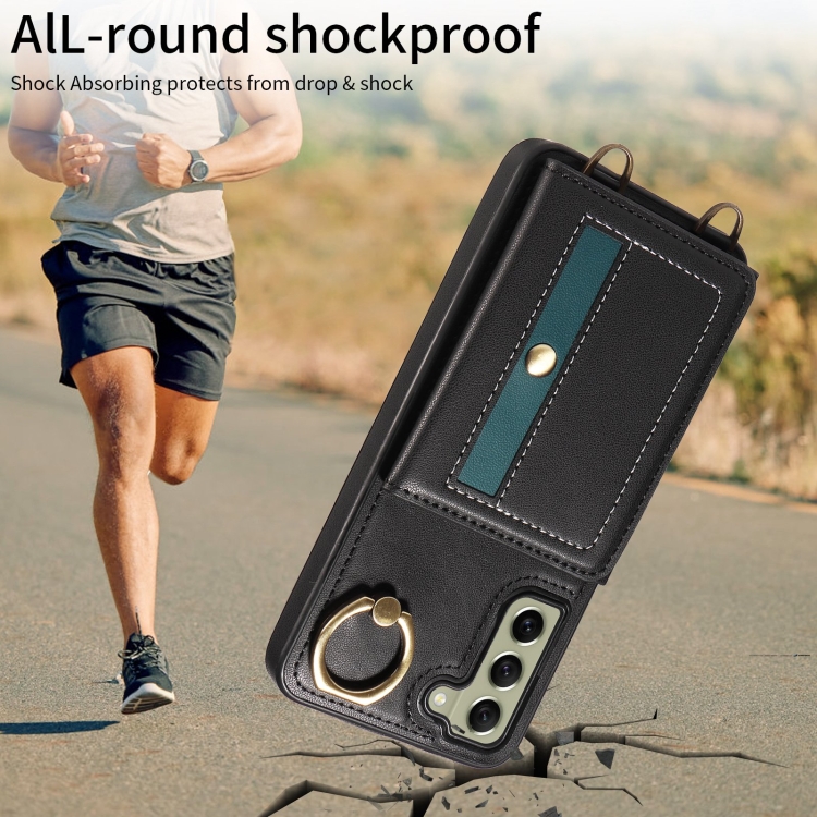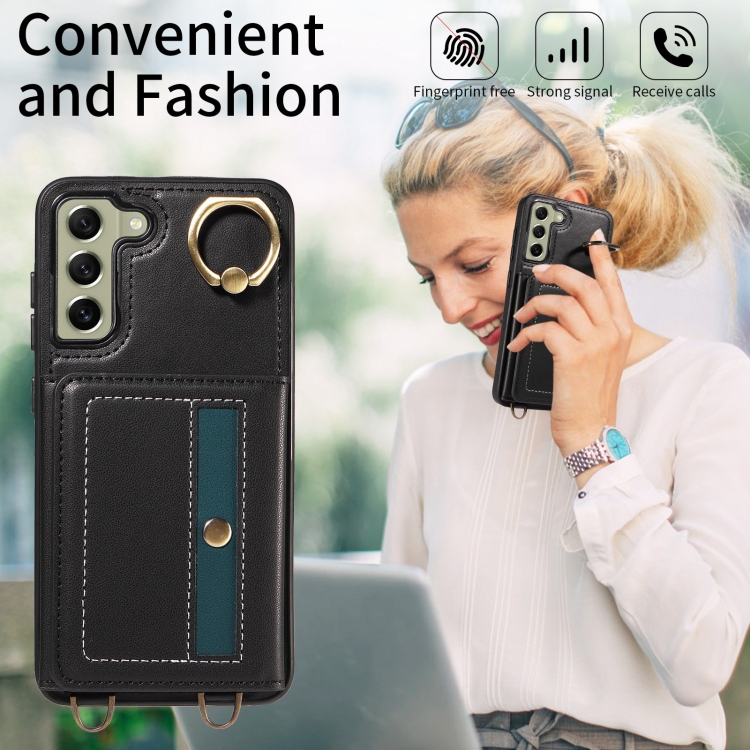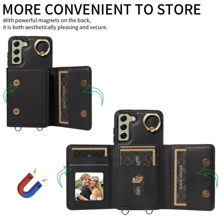 Funda Tipo Billetera Cruzada Samsung Galaxy S21 FE 5G con Soporte para Anillo Funda de Cuero para Teléfono (Negro)