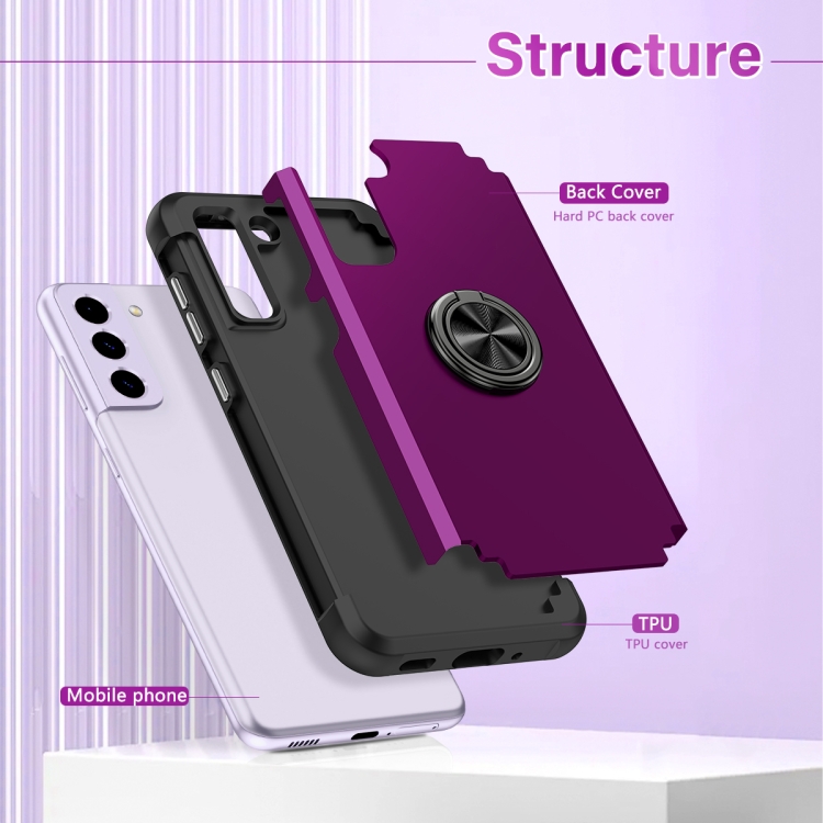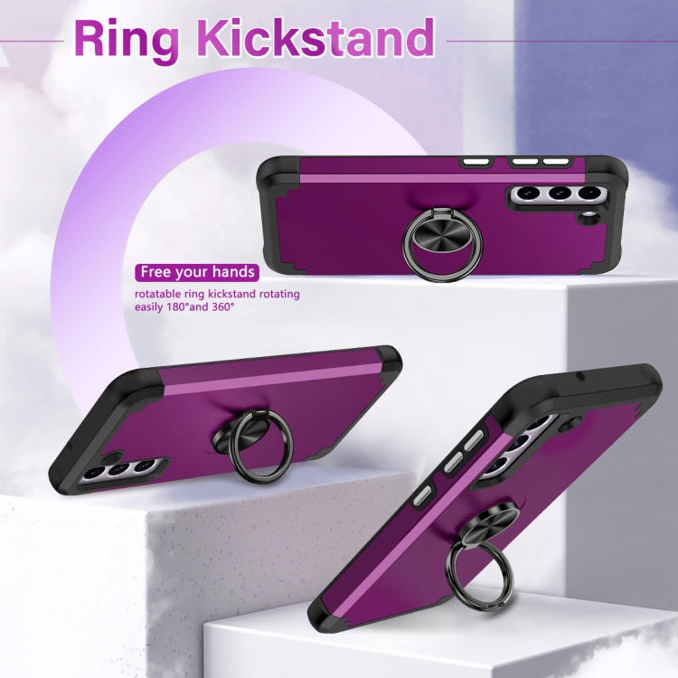 Funda para Samsung Galaxy S21 FE 5G L2 Magnética con Soporte de Anillo Giratorio (Púrpura Oscuro)